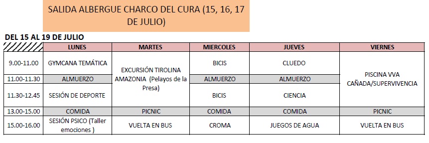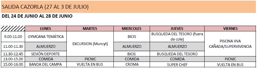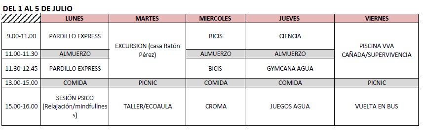 *Esta programación está sujeta a variaciones dependiendo de las condiciones climatológicas o a las necesidades de cada grupo.