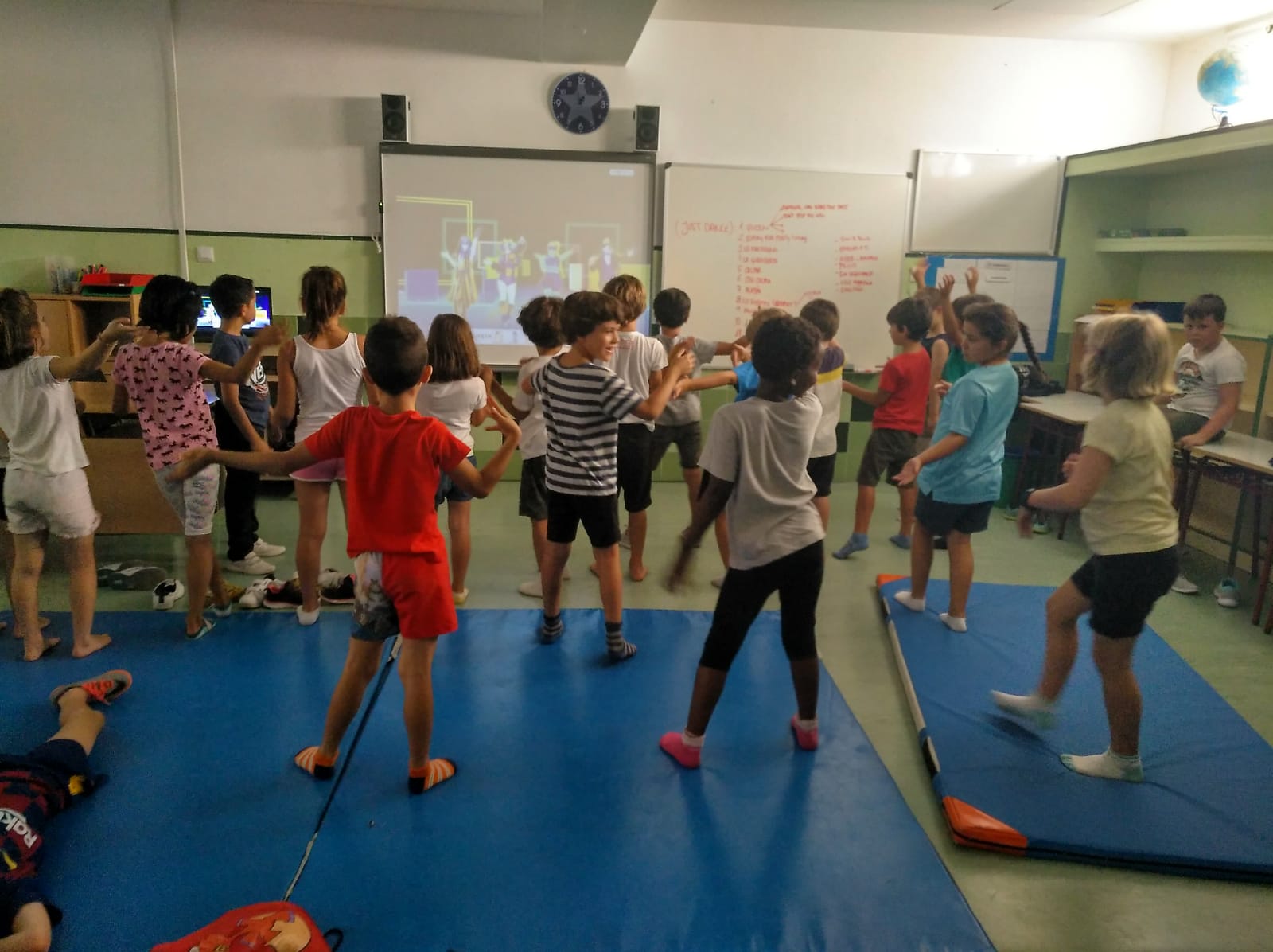 Después del snack, el grupo de Primaria no ha podido llevar a cabo la actividad programada de Super Chef. A cambio han tenido dinámicas deportivas. El grupo de Infantil ha tenido La Banda del Campa.