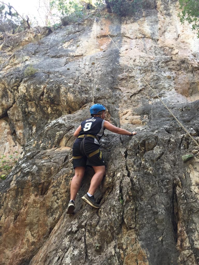 Han comenzado la mañana enfrentándose a un gran reto: ESCALADA Y RÁPEL. La actividad ha constando de dos partes: una inicial que era subir una montaña con cierto desnivel, y con algún que otro tramo complicado. El final de esta ruta era la segunda actividad: escalada y rápel. Una vez que todos estaban listos y asegurados con el material oportuno, cada alumno ha subido y bajado hasta donde podía. Siempre arropados y animados por sus compañeros.