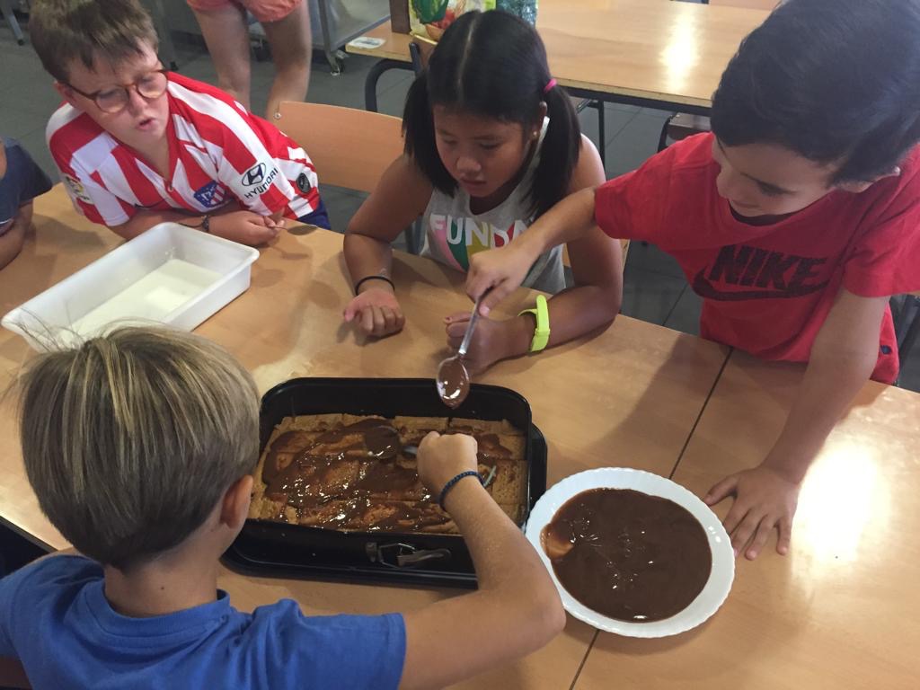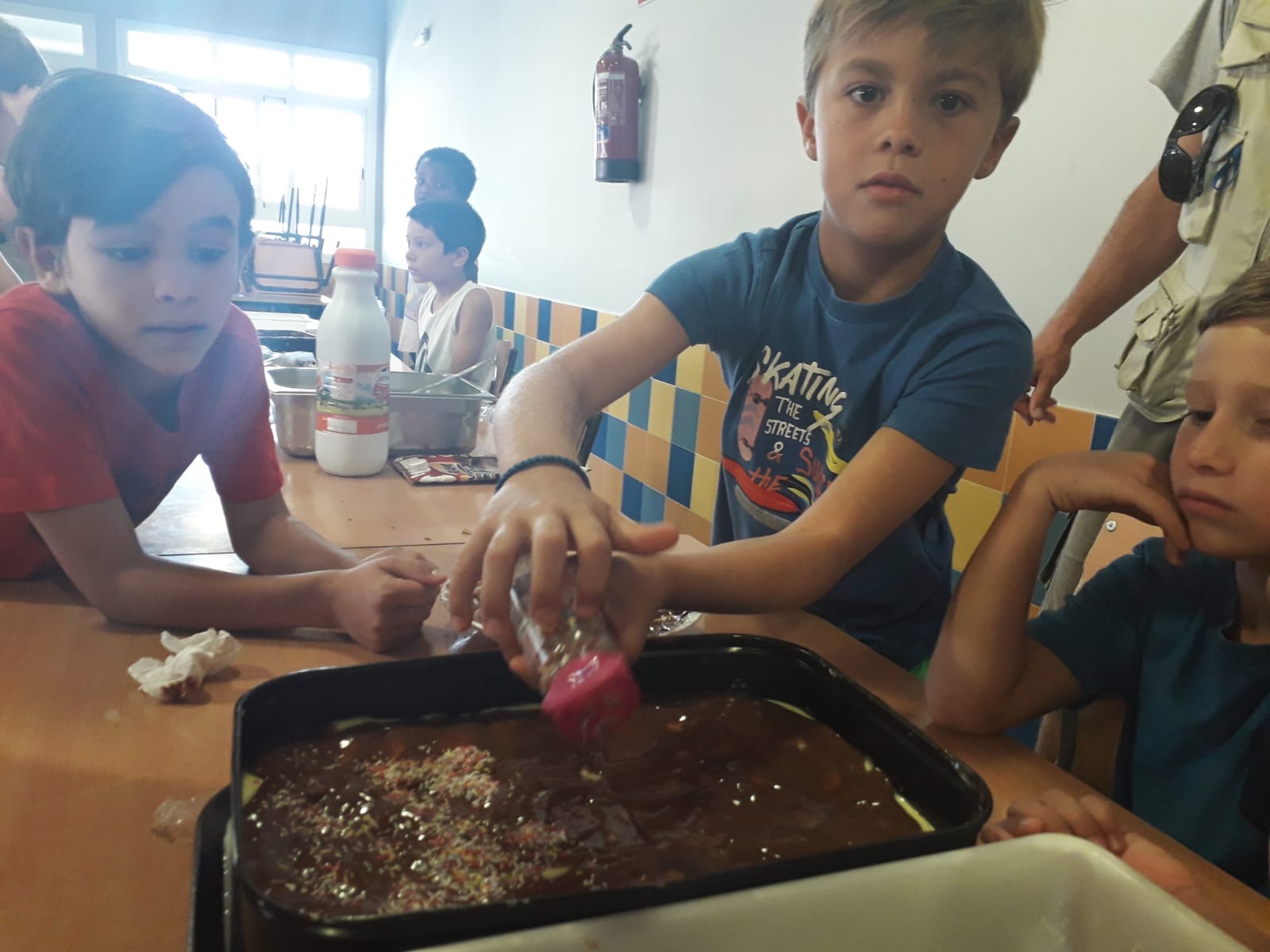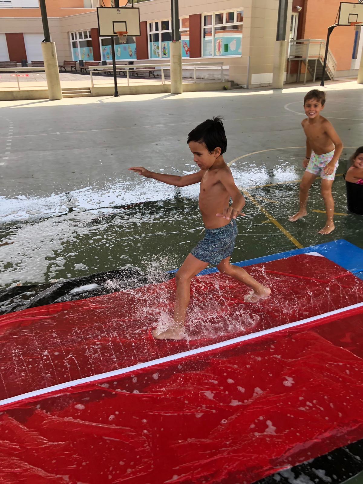 El grupo de Primaria ha empezado la jornada con un concurso de tartas de Súper Chef, teniendo de jurado a nuestra cocinera Eva. ¡Están hechos todos unos cocinillas! Después, se han refrescado en la pista deslizante y han rematado la pintura de alguna camiseta. Por la tarde, ¡al agua!