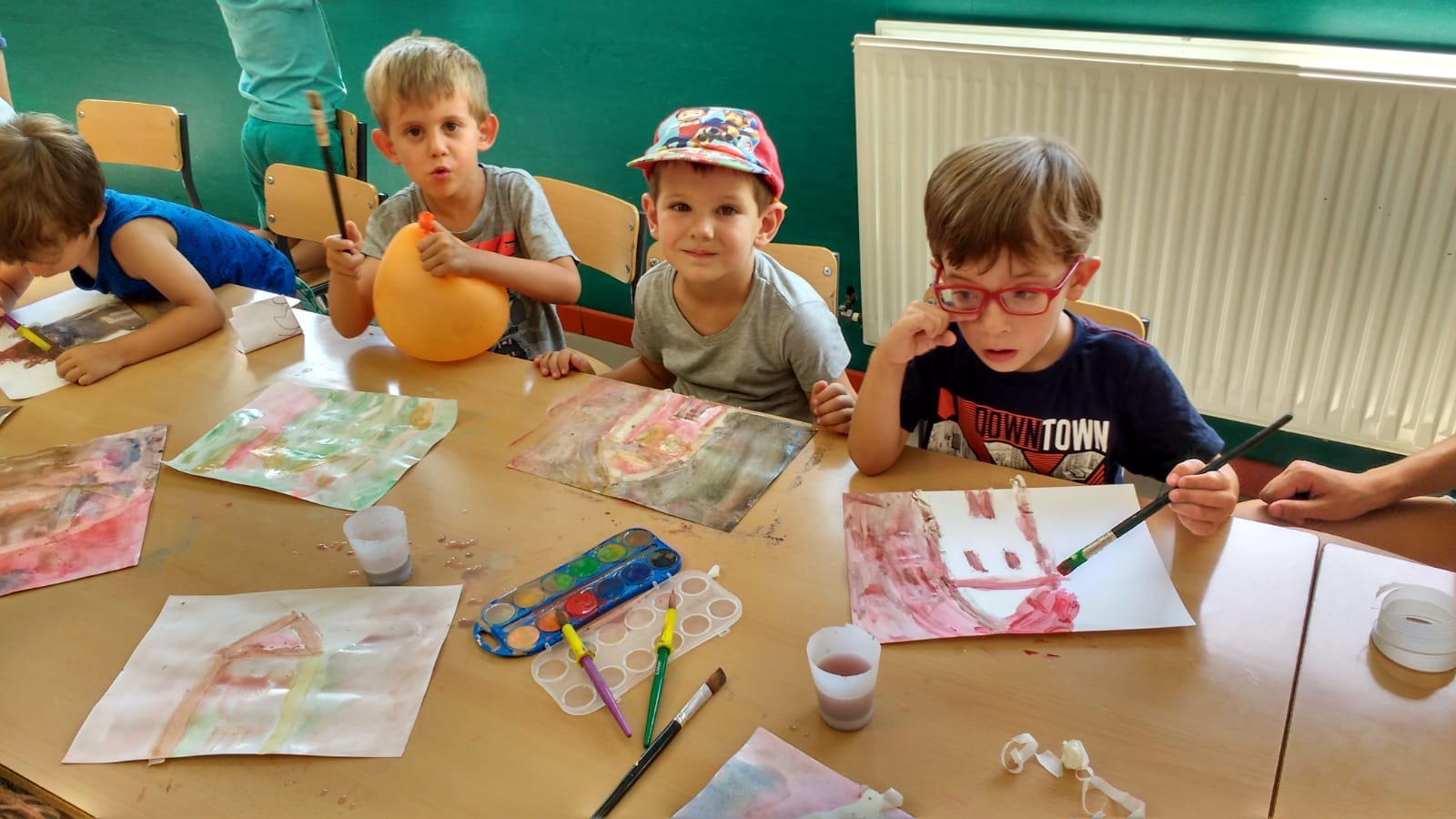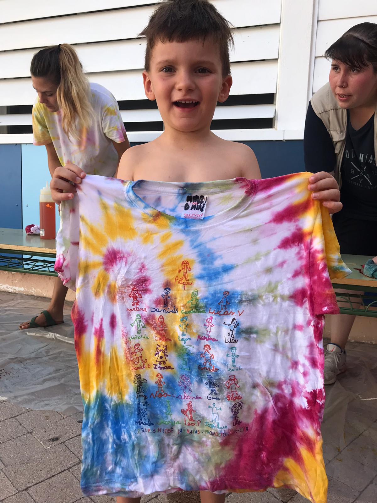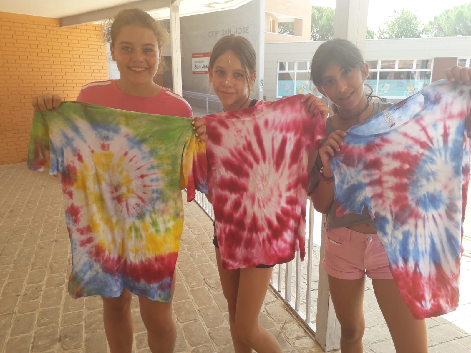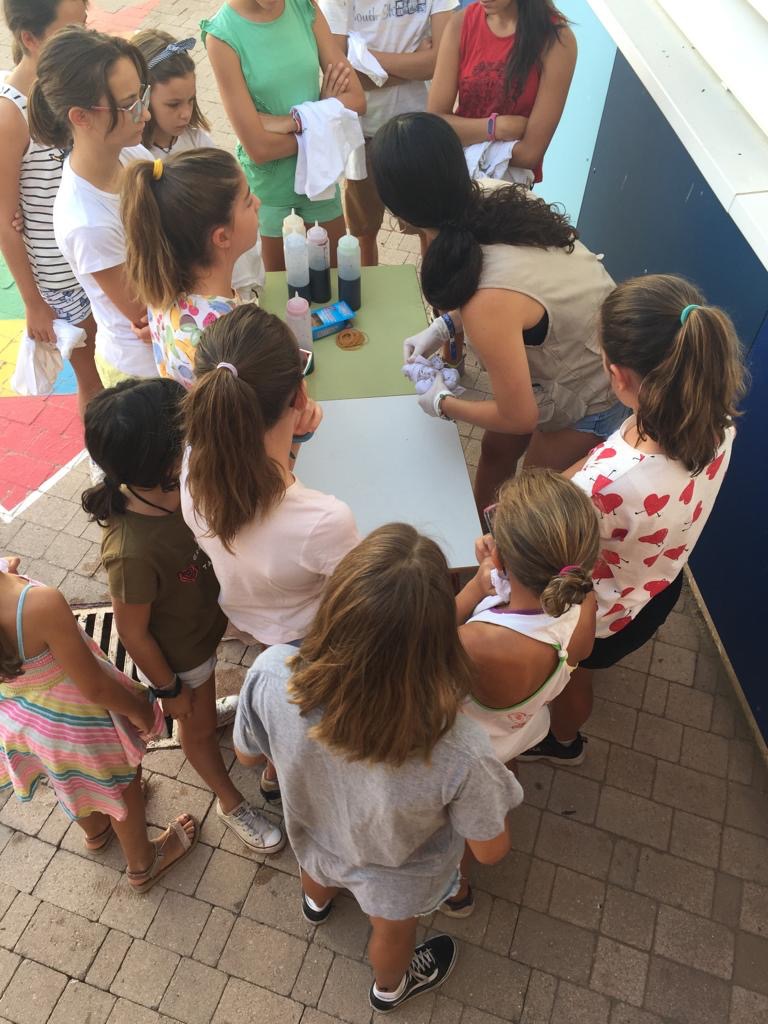 El grupo de Infantil ha comenzado la mañana con un taller de piratas: mensaje en la botella. Luego han continuado con un taller de Ciencia del Hormiguero de pinta-camisetas, después se han refrescado con la pista deslizante y han rematado el día en la pisci.