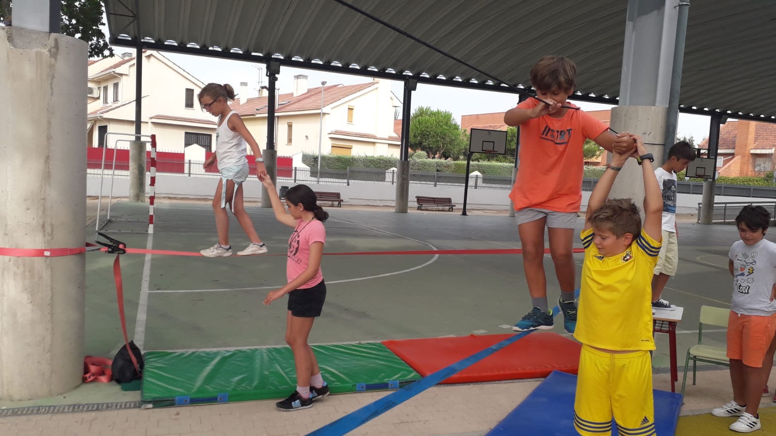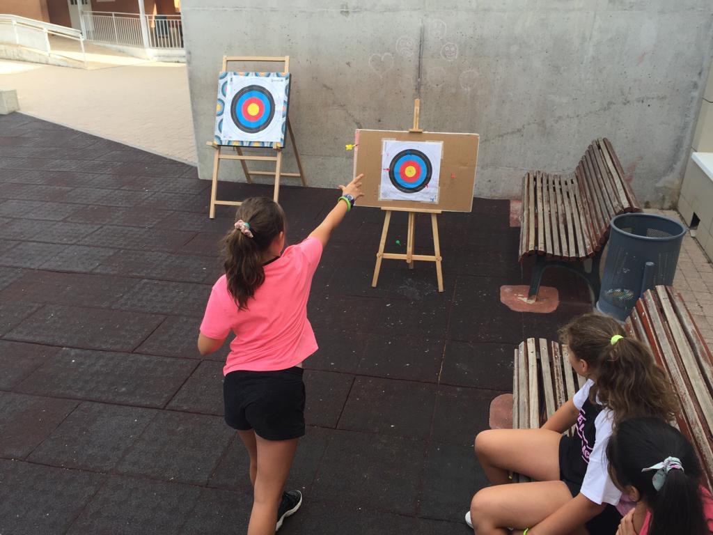 El grupo de Primaria ha rotado en una gymkana por diversas actividades físicas: bádminton, tiro con arco, dardos y slackline. Después, han ido a refrescarse a la piscina.