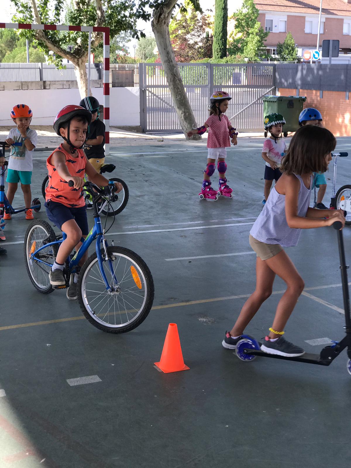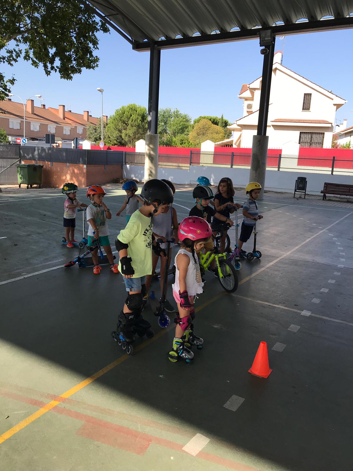 Hoy hemos tenido día sobre ruedas: el grupo de expertos ciclistas han salido a hacer una ruta por el campo, mientras que los rollers se han quedado en el cole haciendo dinámicas y circuito vial.