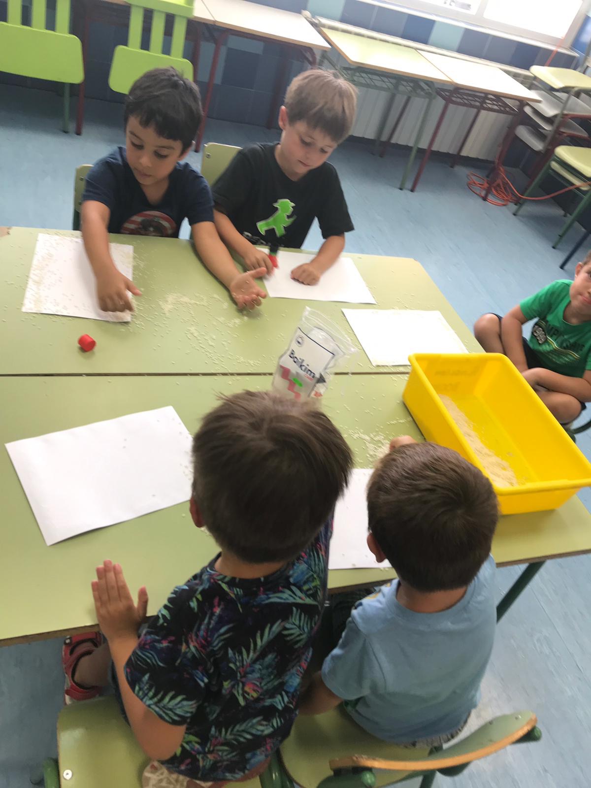 El grupo de Infantil ha comenzado la jornada con una dinámica muy chula de cajas sensoriales. Luego ha continuado con un taller del huerto, y por la tarde, han ido a la piscina.