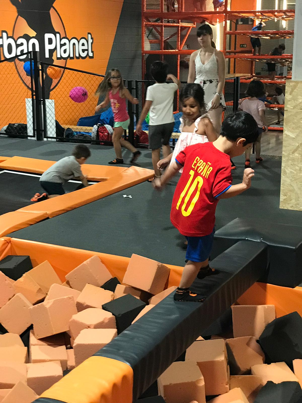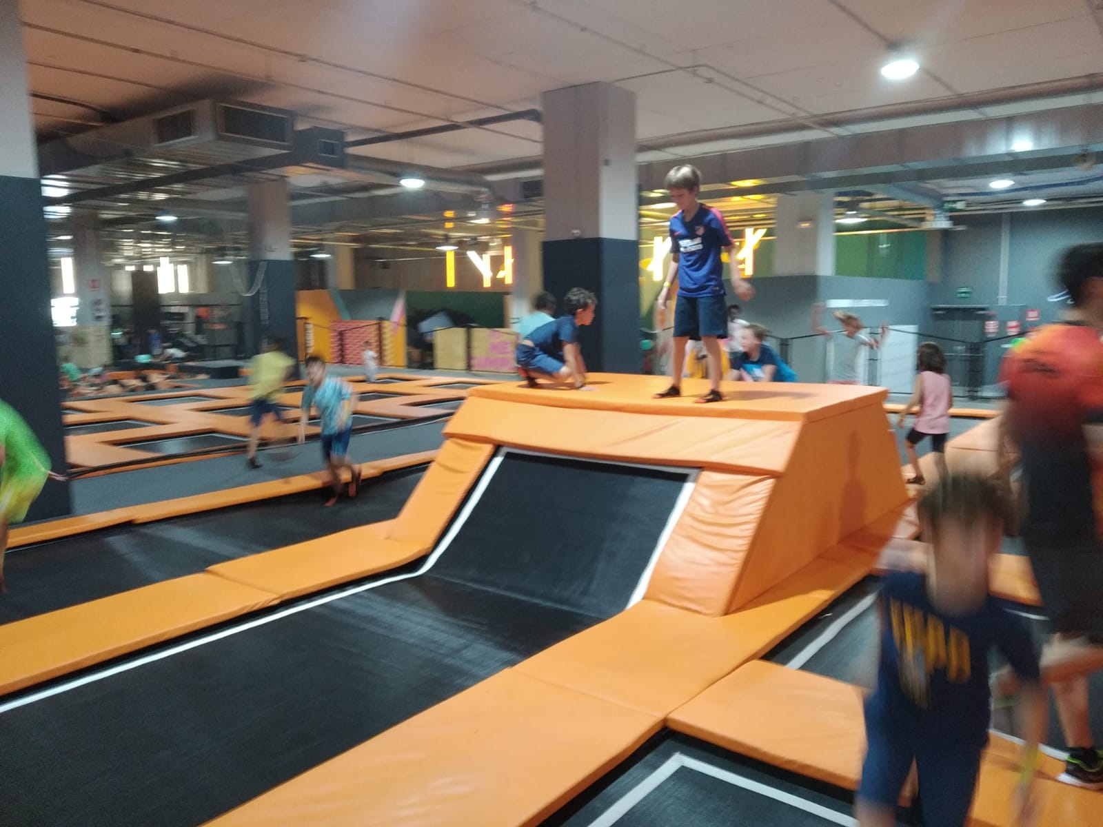 Hoy hemos ido todos juntos de excursión al Urban Planet Jump de Alcobendas. Allí hemos disfrutado saltando y jugando. Hemos descubierto lo genial que es practicar deporte a través de dinámicas relacionadas con el salto: colchonetas, camas elásticas, toboganes, gladiator battle, ninja, basket, fútbol, free style,… ¡Una pasada!