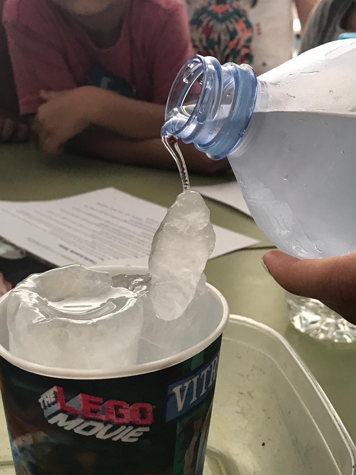Después del desayuno, el grupo de Infantil ha hecho una sesión de experimentos de superenfriamiento con agua y hielo y el grupo de Primaria ha llevado a cabo dinámicas deportivas.